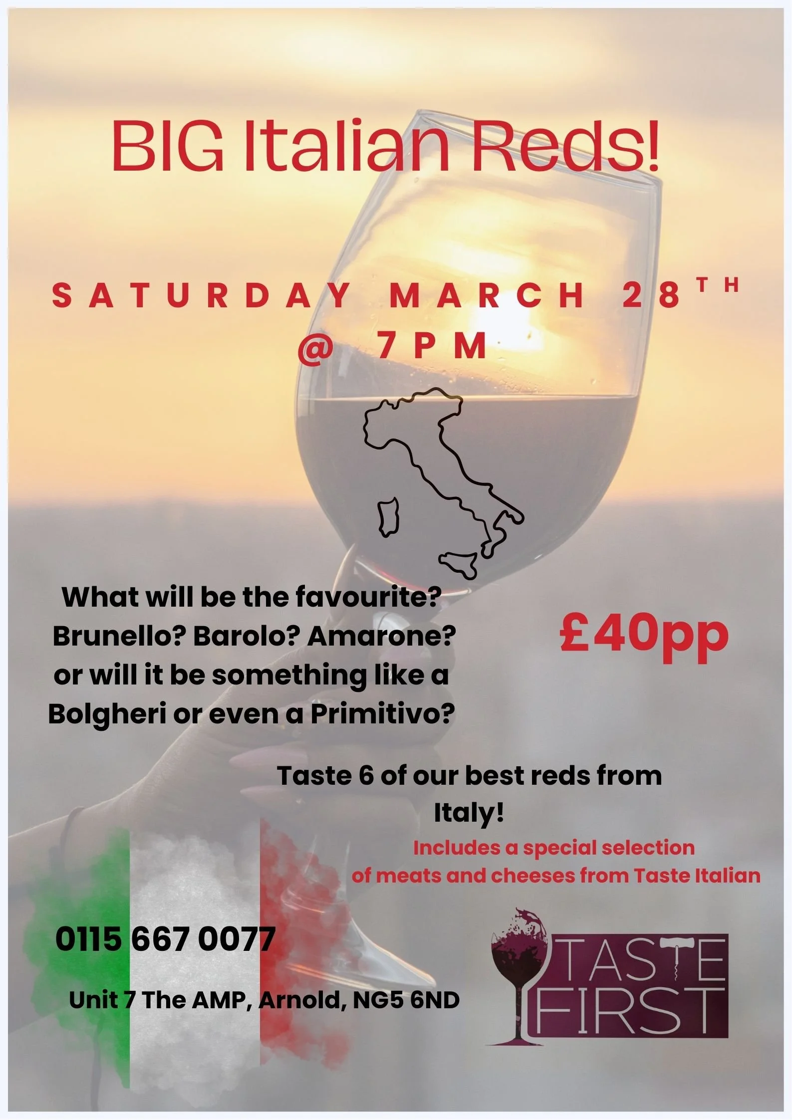 We have wanted to do this one for ages and are really excited to pour 6 of what we think are our best Italian Reds! We will of course be pouring the big 3! Brunello, Amarone and Barolo along with a selection of others. Which one will be the favourite?